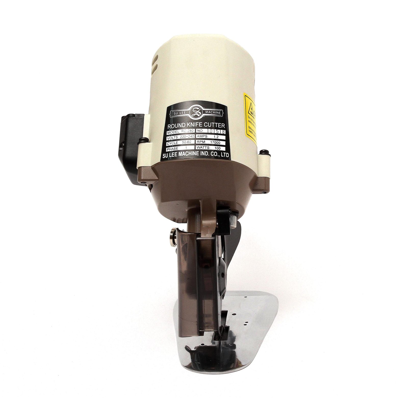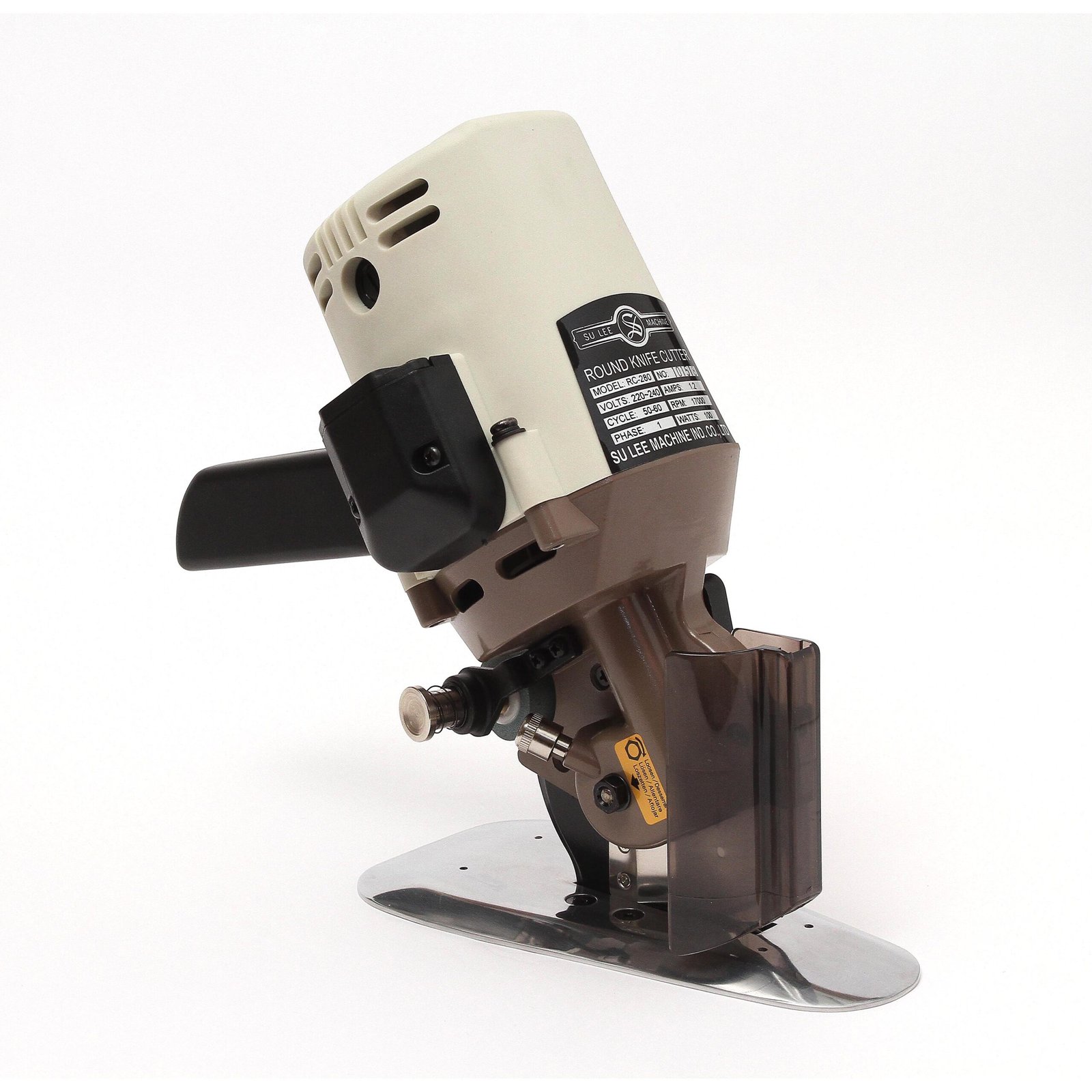The thick material round knife cutter features a high powered motor, circulating at 17000 RPM. Using an 8 edged knife, it can cut through tougher materials such as leather, carpet, PVC, or plastic. The wide baseplate is designed for easy maneuverability and control for users to cut intricate shapes.