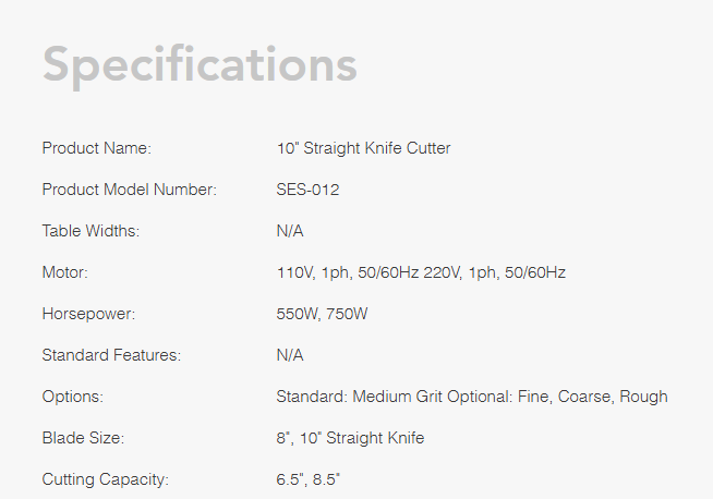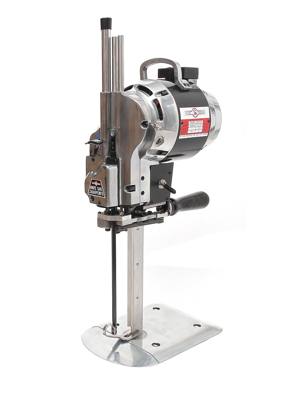 The 10″ Straight Knife Cutter (SES-012) is engineered to insulate material to the sides when cutting multiple layers of fabric. The cutter features an automatic sharpener, allowing for quick automatic sharpening at the push of a button. The wide baseplate gives operators easy maneuverability for cutting intricate and simple shapes.