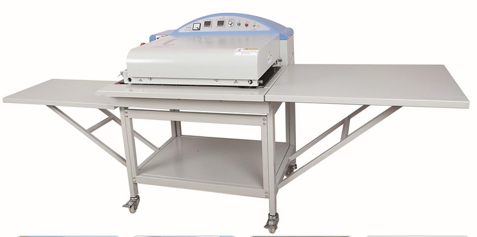 Bonds fabric layers with heat and pressure, ensuring strong adhesion and a smooth, professional finish in garment production.